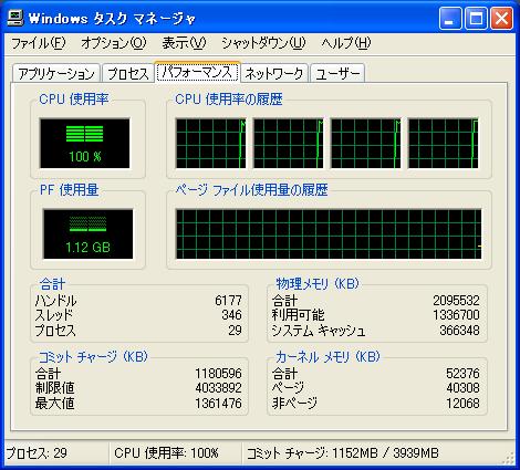 intelのCore2Quad。 一月にはQ9450がでるが、よくいわれるようにほしいと思ったときが買い時だろう。 まさぽん氏にタスクマネージャーとベンチマークをアップしろと言われていたので載せてみる。 ベンチマークの方は 一番上の行がAthlon64 x2 4200+ (socket939) 2.2G L2 1M で 二行目がPentiumu III 500MHz (L2なんてしらん)で 一番下がCore2Quad 2.4GHz L2 8Mである。 左から順に それぞれのプロセッサの各コアの浮動小数点演算の合計、 1コアあたりの浮動小数点演算、 それぞれのプロセッサの各コアの整数演算の合計、 1コアあたりの整数演算である。 パソコンに詳しくない人には申し訳ない記事でした。 PR